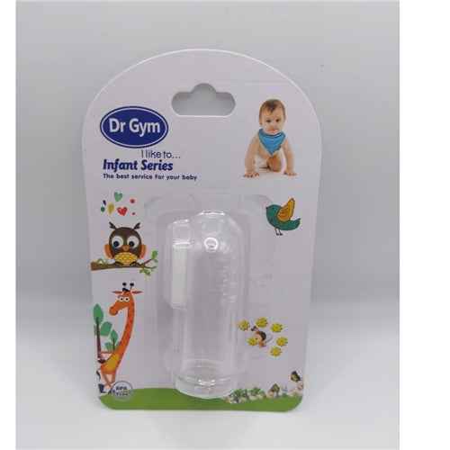 The Dr. Gym Baby Finger Toothbrush is a soft, silicone oral hygiene tool designed for infants starting from 0 to 3 months plus. It is used to gently clean early teeth and massage sensitive gums during the teething process.