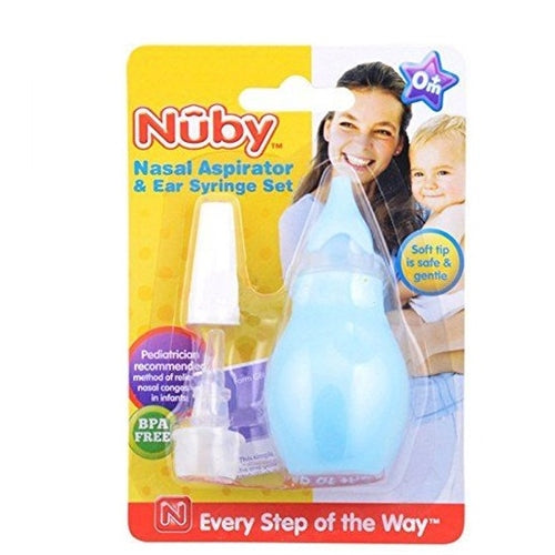 The nasal aspirator and ear cleaner is easy and effective due to the soft and controlled suction power. Press the bottom of the aspirator and gently place the head over the baby's nostril. Release the pressure to allow the aspirator to do its job. Remove any material from the tip after each suction. The aspirator is powerful and the suction power can be easily controlled. This aspirator can also be used to remove excess and natural wax from the baby's outer ear canal. Replace the soft blue head with the flexible, clear head and you're done.