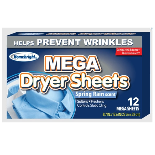 Homebright Mega Dryer Sheets - Spring Rain, 12 Sheets