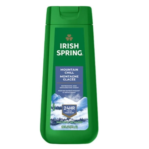 Experience the cool outdoor freshness in every bottle of Irish Spring Mountain Chill Moisturizing Face and Body Wash. Your ultimate solution for a refreshing, moisturizing cleanse. This moisturizing face and body wash helps to retain your skin's natural moisture. Its refreshing and invigorating scent will keep you fresh for 24 hours. Plus, itโs paraben free and formulated without phthalates. This moisturizing body wash lathers up beautifully and effectively washes away bacteria, leaving you with a sense of cleanliness and confidence. Irish Spring has a new cap with leak-proof design ensuring you stay fresh no matter where your journey takes you.