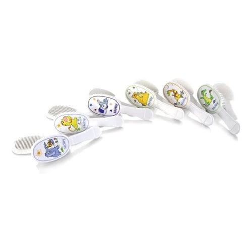 This Nuby Comb Brush Set was designed especially for baby. The nylon bristles of the brush are soft and gentle on baby's tender scalp. Both the brush and comb are sized for baby's needs but comfortable enough for an adult to use.