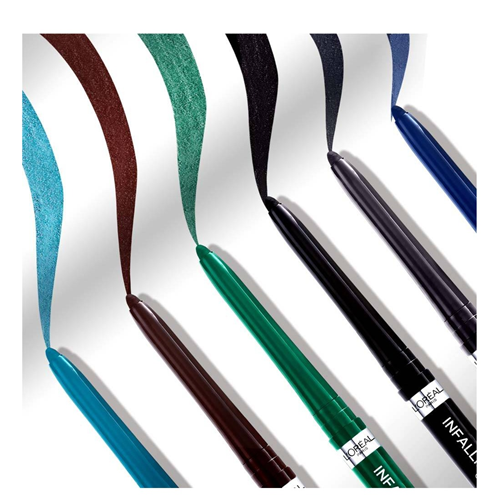Up to 36HR wear. Easy Application. Waterproof, smudge-resistant. Define & line your eyes with saturated color that lasts. L’Oreal Paris’s Infallible Grip gel eyeliner glides effortlessly across lids to deliver a smudge-resistant, smooth line that lasts up to 36 hours. With six shades to choose from you can find a color with hyper-pigmented intensity for any classic or bold look.