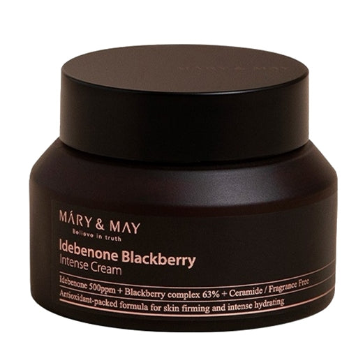 Mary&May Idebenone + Blackberry Intense Cream, 500ppm indebenone and 63% blackberry complex extract, Antioxidant-packed formula for skin firming and intense hydrating